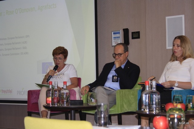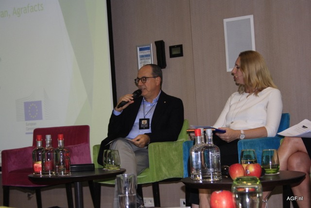 Helene Deruwe (Freshfel), Giulia Montanaro (Assomela), Alessandro Dalpiaz (APOT) en Philippe Binard (Freshfel).