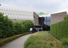 Voor de rondleiding door de diepvriesfabriek van Ardo kregen de deelnemers eerste een presentatie over het bedrijf in het hoofdgebouw.