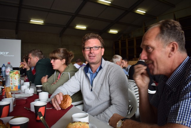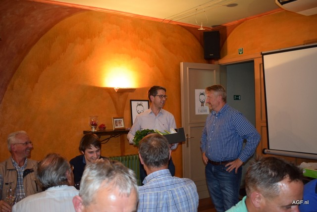 Bart Parrein (l) organiseerde het Belgische deel van de studiedag en werd ook bedankt met een boer Ted pakket.