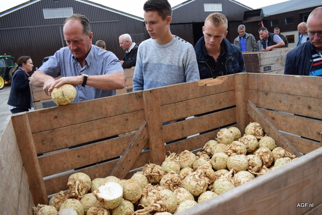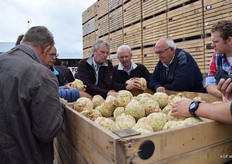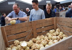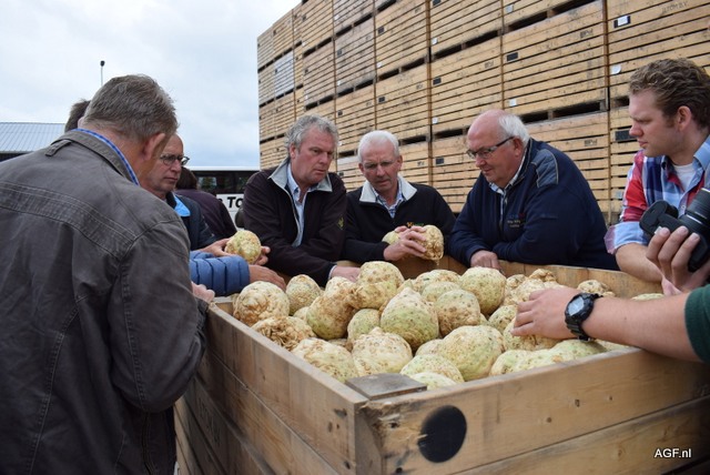 Telers bekijken de knolselderij van Iltom, het bedrijf van Marc van Vooren.