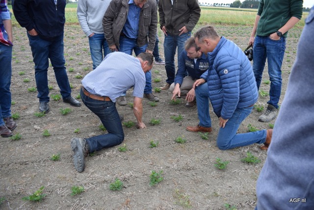 "Inspectie van de grond en planten. "Ze staan er mooi bij ondanks de droogte", vinden de telers."