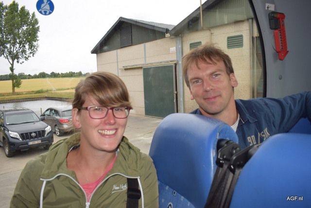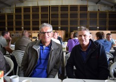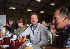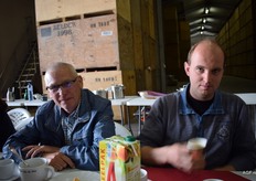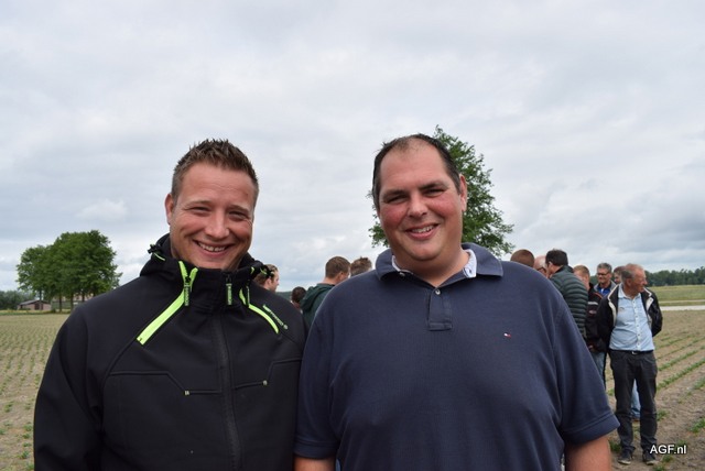 Nanne Kooiman (l) van het gelijknamige mechanisatiebedrijf zit naast teler Peter Moors