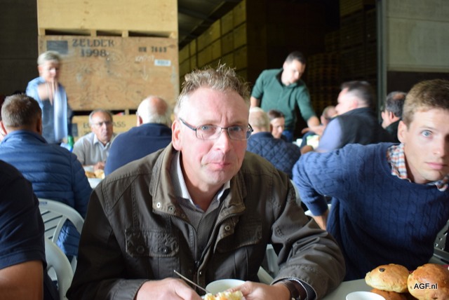 Na de knolselderij geniet Leon Jacobse van een broodje. Leon heeft een areaal van 35 hectare aan knolselderij.