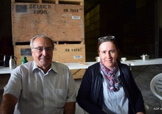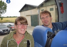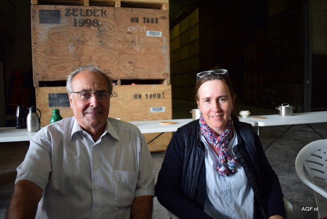 De heer Heemals van Heemels Agro teelt sperziebonen en 40 hectare aan knolselderij. Naast hem Ann Demelenaere van zaadleverancier Nunhems
