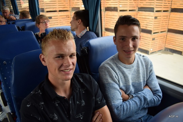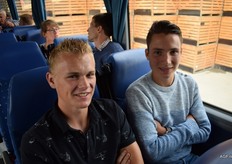 Ook de jeugd is vertegenwoordigd bij de studiereis. Hier zitten Jacco Bliek (l) en Reinier Stoutjesdijk