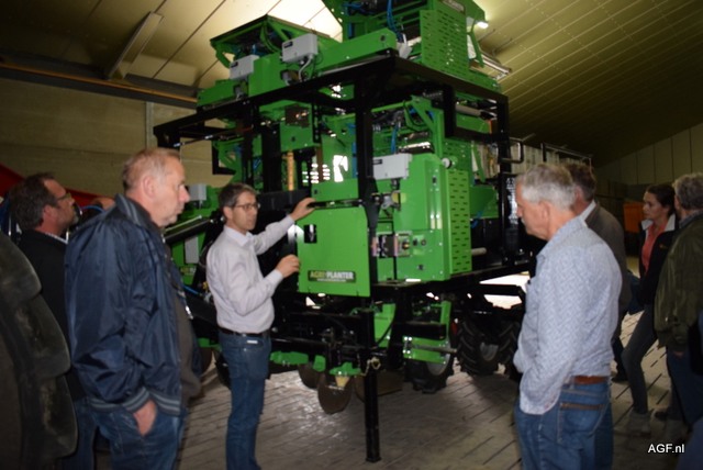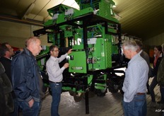 Bart Parrein legt de werking van de Agri Planter uit die industrieteler Tavenier heeft mee helpen ontwikkelen.