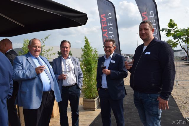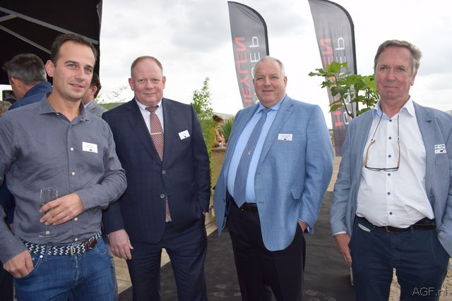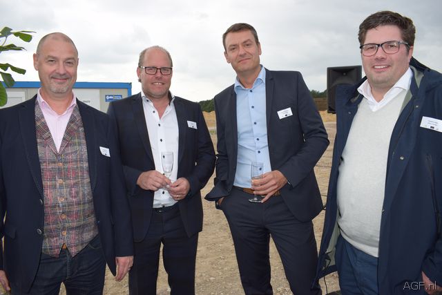 Rob (l) en Peter Huijbrechtsvan Huijbrechts Koeltechniek leveren 3 transkritische CO2 installaties in de nieuwbouw. Ze flankeren de directie en eigenaar van Staay Food Groep Rien Panneman en Dammis van der Staaij