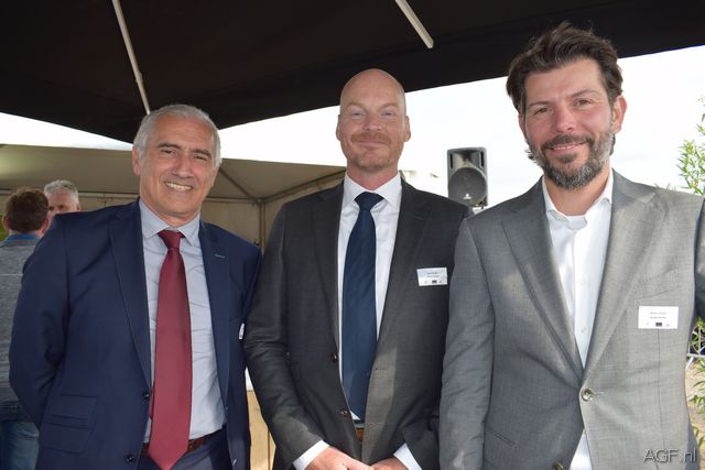 vlnr David Batens (Groep Heylen), Tim van Gerven en Sander van Oosten van Fresh Park Venlo; Het belgische bedrijf Groep Heylen investeert in logistiek vastgoed en is met nog twee panden een bekende speler op Fresh Park Venlo