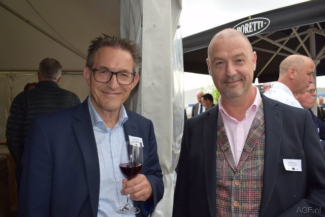 Hans de Groot (Staay-Van Rijn) drinkt een glas wijn met Ton van Elderen (ZON Vastgoed)