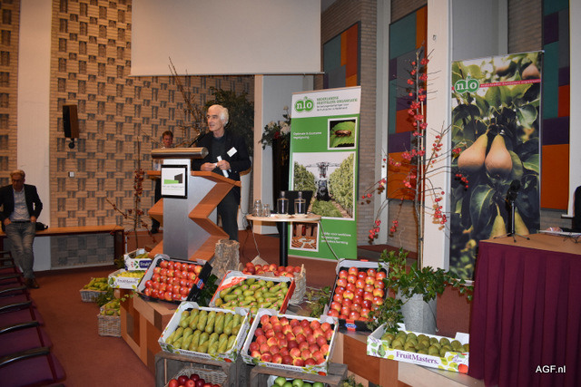 Dirk van Hees (Fruitconsult) geeft een presentatie over de teeltervaringen met nieuwe perenrassen. De presentatie gaat over de teeltervaringen van Qtee, Early Desire, Migo, Sweet Sensation en de Xenia.