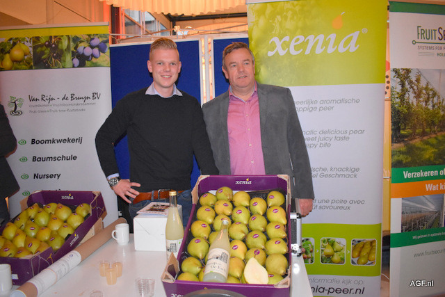 Raymond van Ojen samen met Pieter van Rijn. Zij presenteren de Xenia peer en nieuwe peren sap die ze hebben ontwikkeld. Afgelopen seizoen is er meer dan 6 miljoen kilo Xenia peren geoogst.
