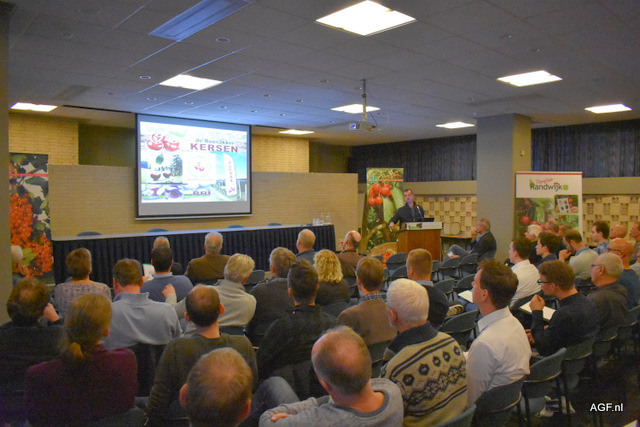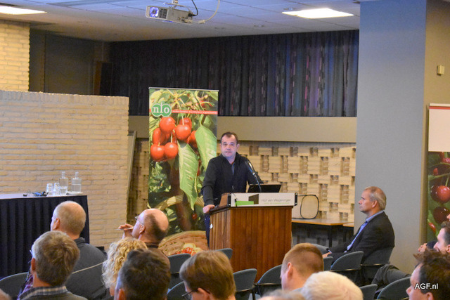 "René Albers geeft een lezing over de "Toekomst Nederlandse kersenteelt". Hij behandeld kansen en bedreigingen voor de kersentelers en wat hij in de toekomst verwacht in de handel."