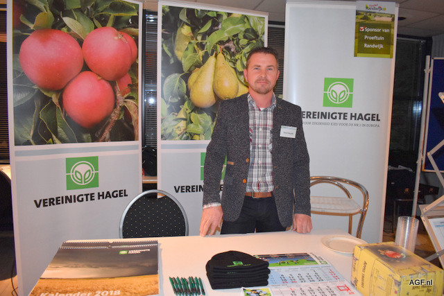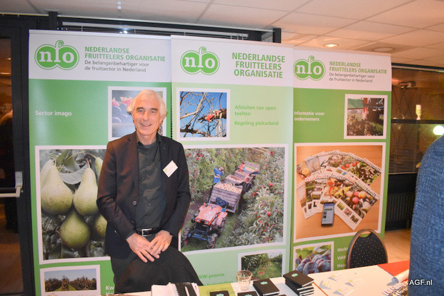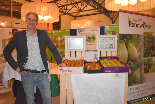 Jan Peeters (Fruitconsult) bij de stand van Proeftuin Randwijk.
