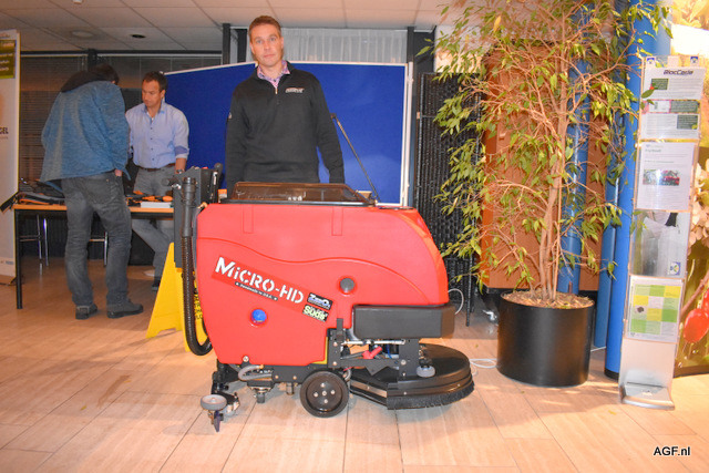 Rob van Ginkel (Jean Heybroek) presenteert de nieuwe schuurmachine die schoonmaakt met Ozon waardoor er geen chemische middelen aan te pas komen.