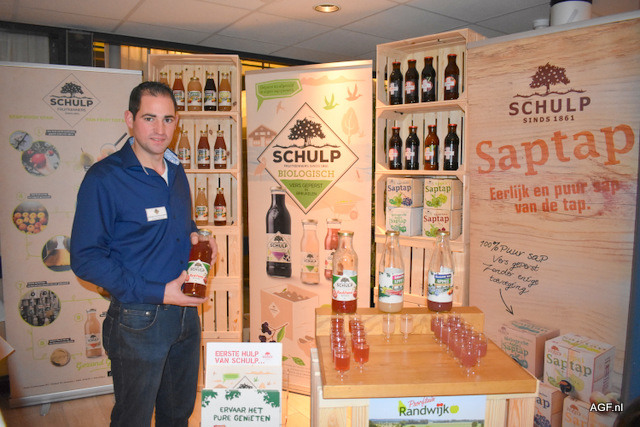Jeroen Vernooij van Schulp Vruchtensappen laat een aantal nieuwe smaken proeven.