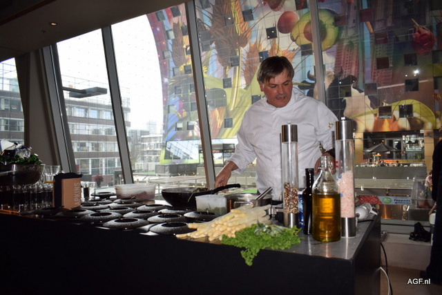 Mario Roberti is druk bezig met de bereiding van de aspergehapjes
