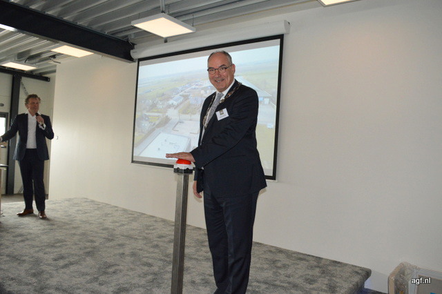 Met een druk op de knop opende de burgemeester de nieuwbouw.