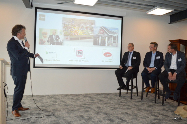 AGF-category manager Sven van de Voorde van Delhaize in gesprek met Andries Quik