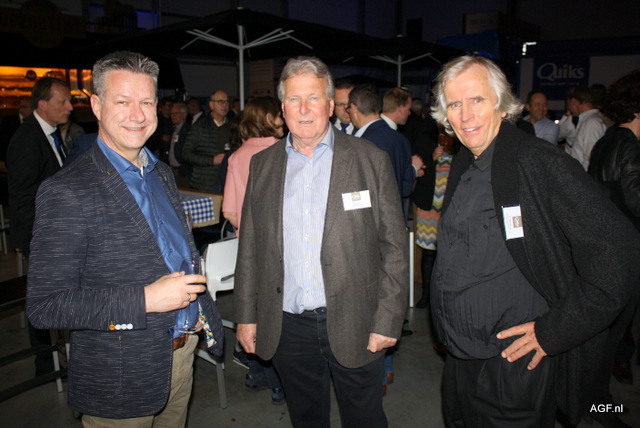 Links en rechts Adrian van Trigt en Kees van der Burg van Quik's met in het midden John van Kollenburg van Verhoeckx Fustreiniging.