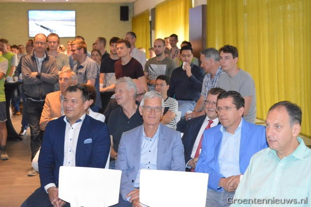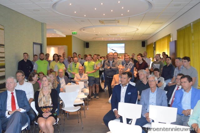 Genodigden en personeel waren aanwezig bij de presentaties van Hein van der Sande en Hans Hoogeveen.