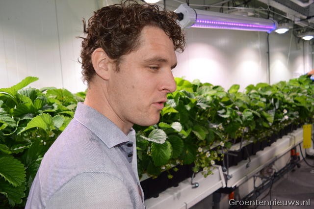 Piet van der Sande verzorgt het gewas in het Certhon Innovation Centre.