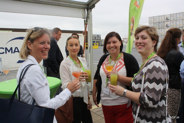 Proost! Kirsten Pint van Zespri, Sharon de Ridder van AGF.nl, Nele Moorthamers van Zespri en Christine Weis van Fruchthandel