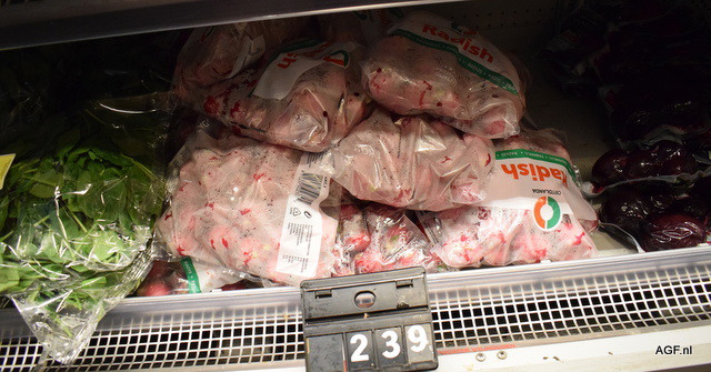 Er zijn ook losse radijsjes te koop, daarnaast salademix, een van de weinige convienience producten bij Tangermarkt