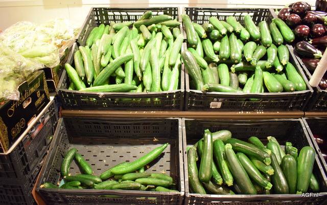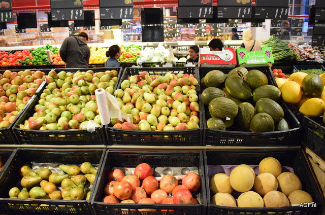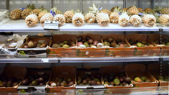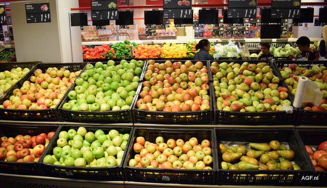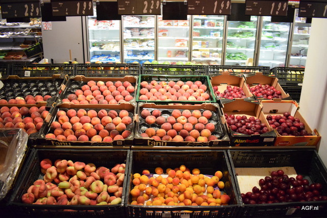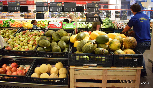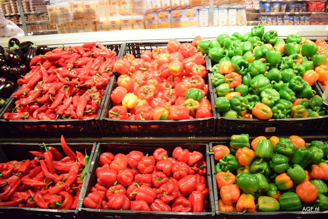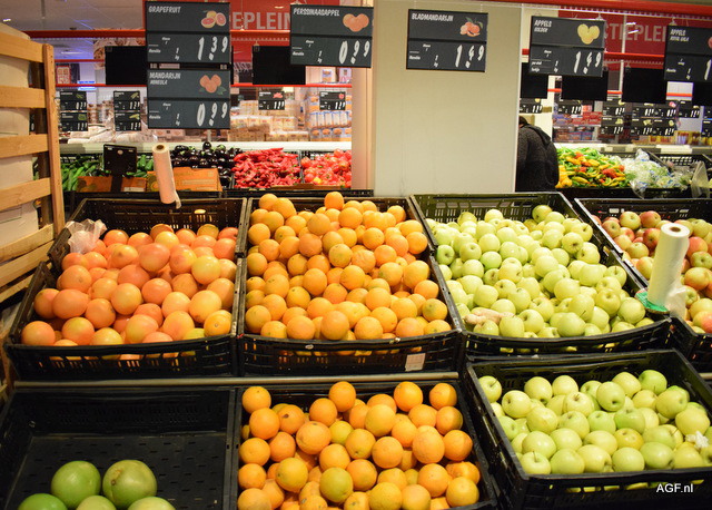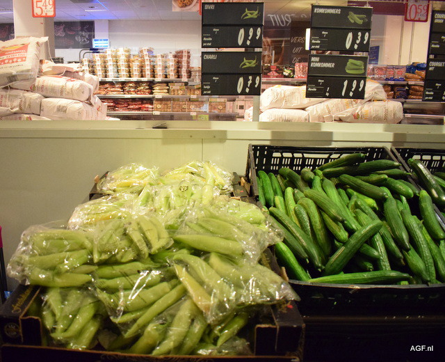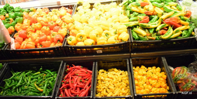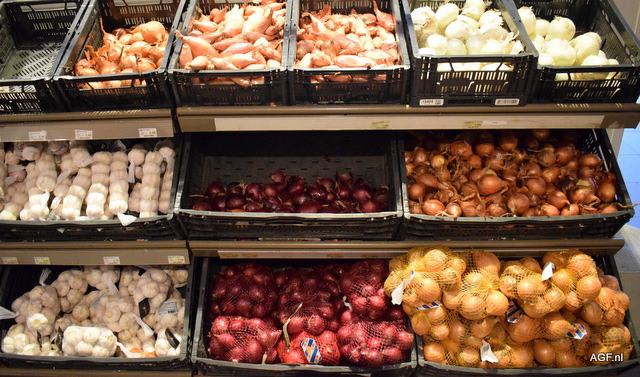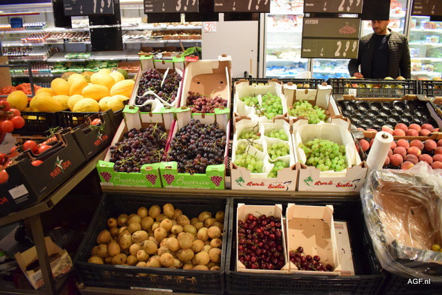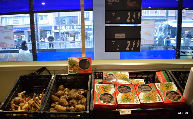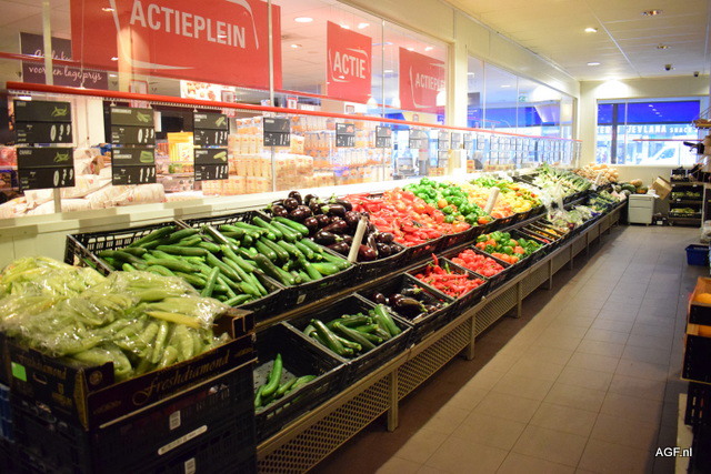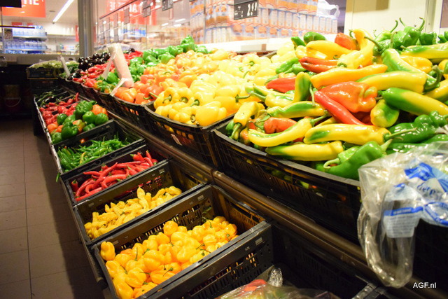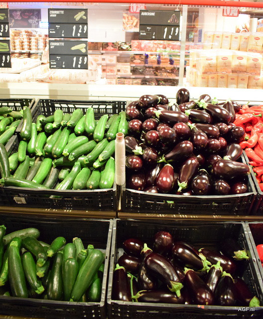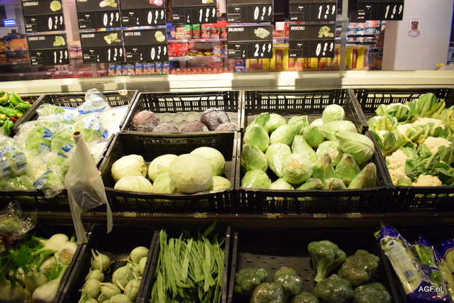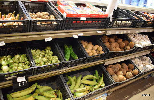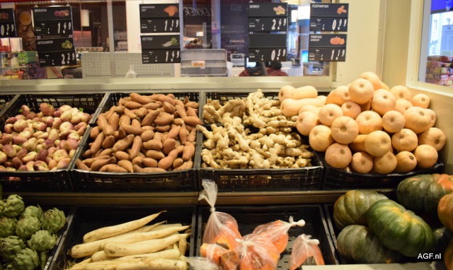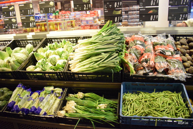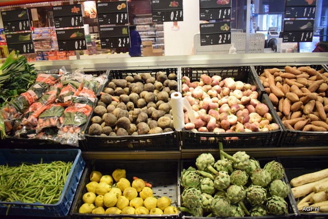 In de bovenste rij: verpakte bospeen, bieten, meiraap en zoete aardappelen; onder: sperziebonen, kweepeer en artichok