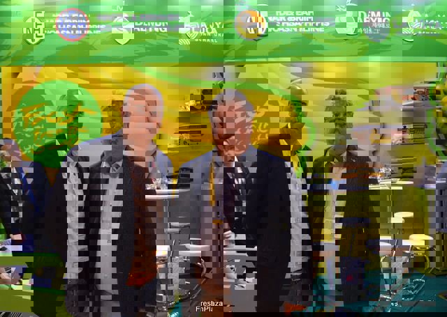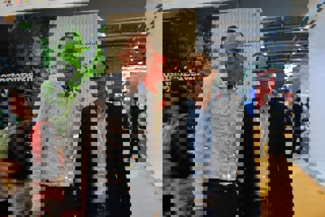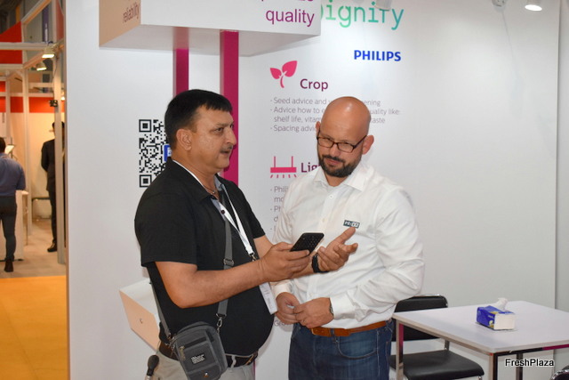 Ger van Burik van de Holland Fresh Group met Marco Lont van JP Beemsterboer in het Holland paviljoen