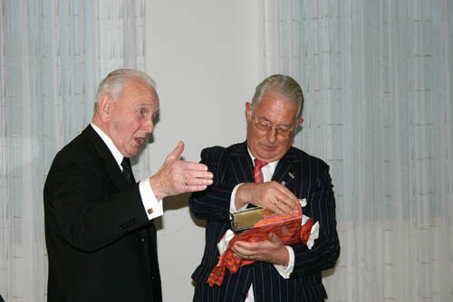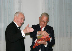 Zijn vriend ds. Mijnders overhandigt een nieuwe statenbijbel