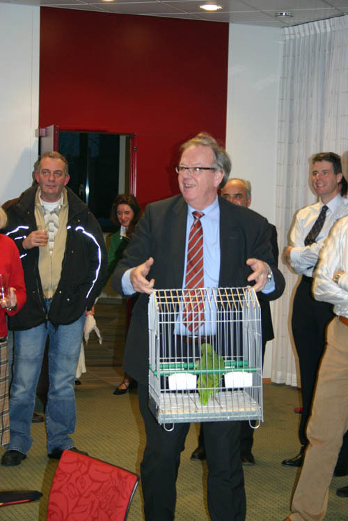Vriend Piet Blankendaal had een ludiek kado voor de dierentuin van Jan meegebracht