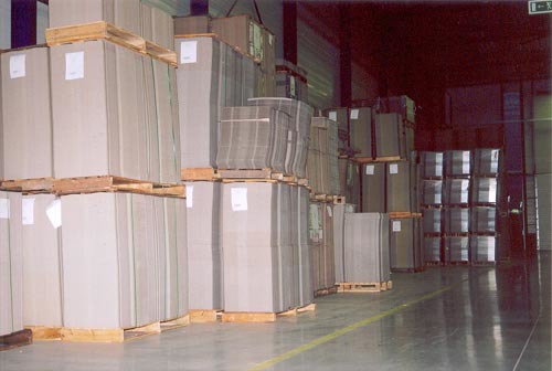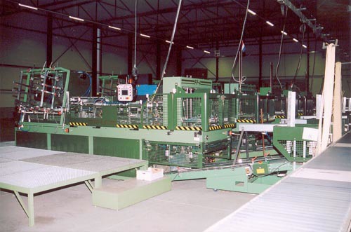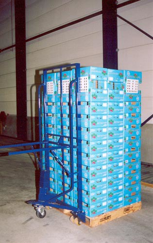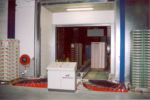 Volle pallets worden met specialesteekwagen op de rollenband gezet