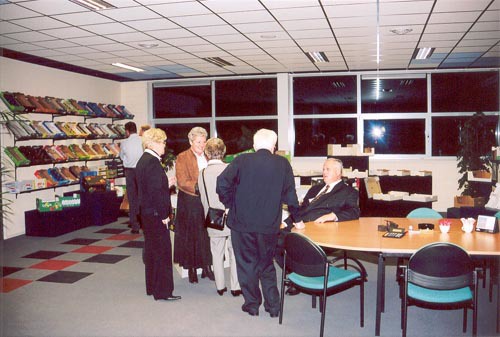 Gezellige ontvangst in voorgedeelte van de productiehal