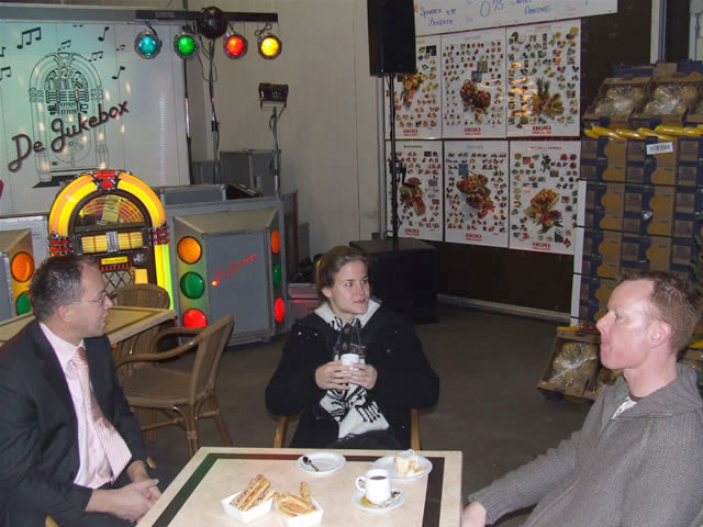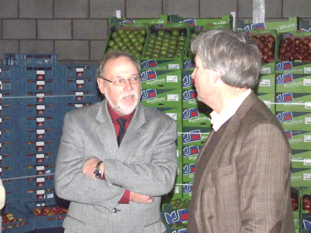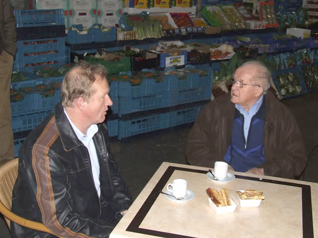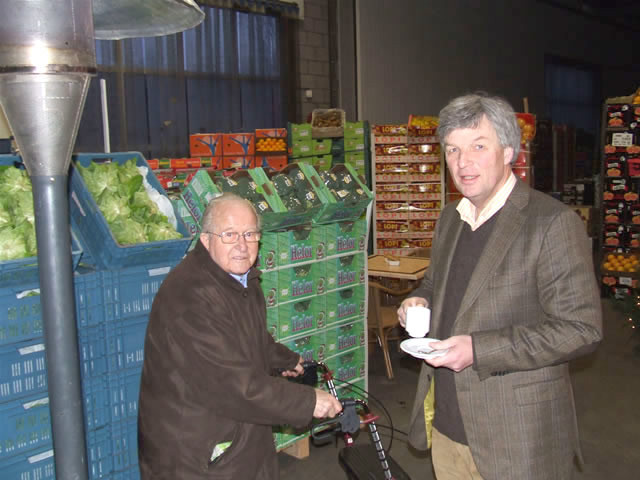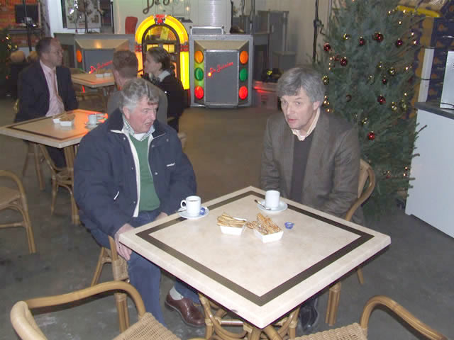 Bertus van Walderveen (rechts) verwelkomt een bezoeker
