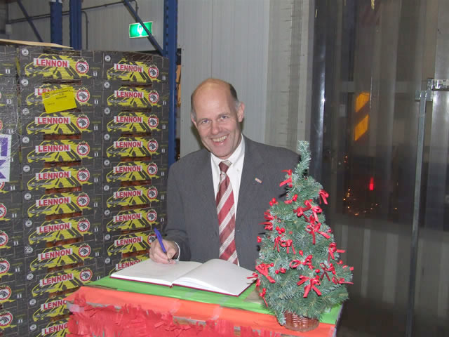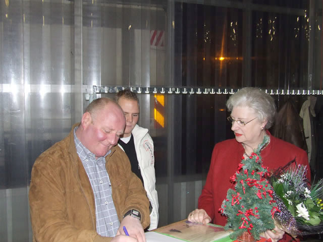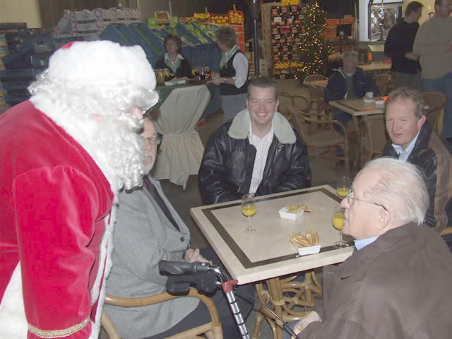 Ook oprichter Henk van Walderveen senior en zijn vrouw waren er natuurlijk bij. Hier even met de kerstman op de foto.