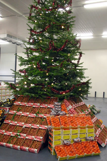 Mooie uitstalling van producten rond de kerstboom
