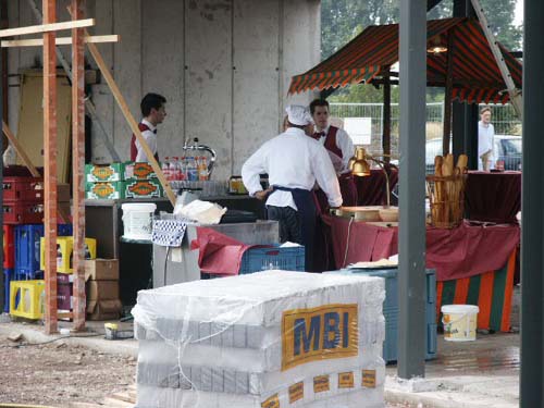 De mensen van de catering zijn er klaar voor.