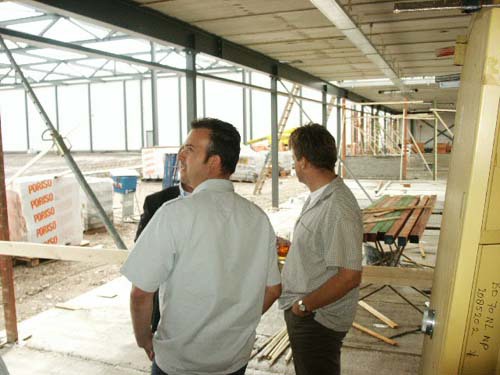 John Voesenek en Dennis van Eekelen bekijken de plaats waar hun buro´s zullen komen te staan.