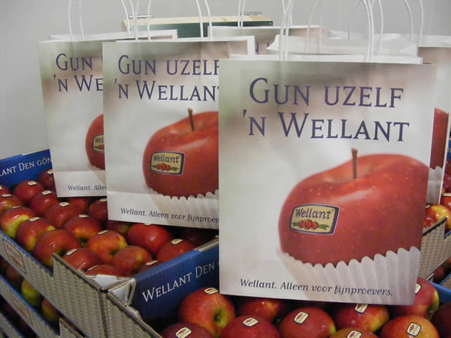 "Met een knipoog naar "eet gezond, neem een appel" hier " gebruik je verstand, neem een Wellant®"."