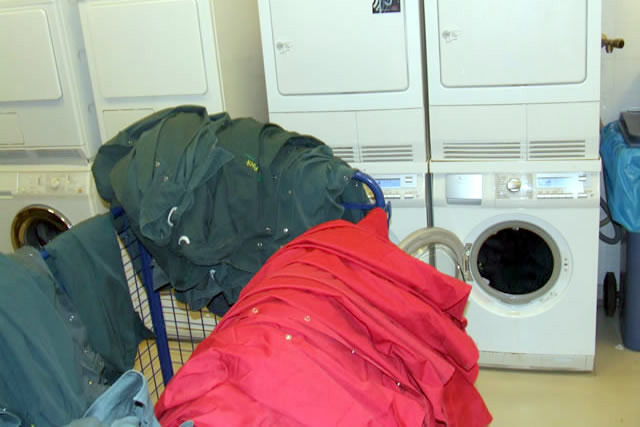 Medewerkers hebben - per functie - een andere kleur overal. Voor zoveel medewerkers zijn ook heel wat wasmachines nodig.