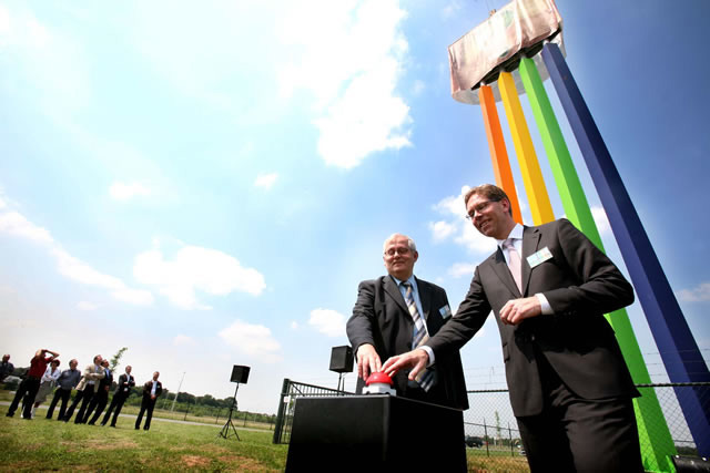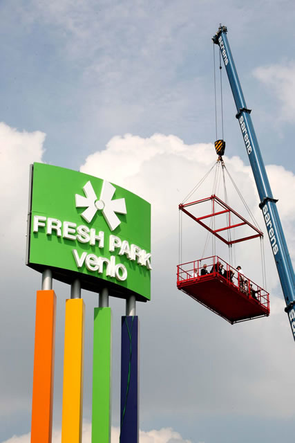 Ger Driessen (gedeputeerde Provincie Limburg) en Frans van Dijck (directeur ZON en Fresh Park Venlo) zetten de onthulling van de nieuwe naam in gang.