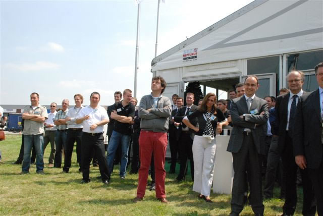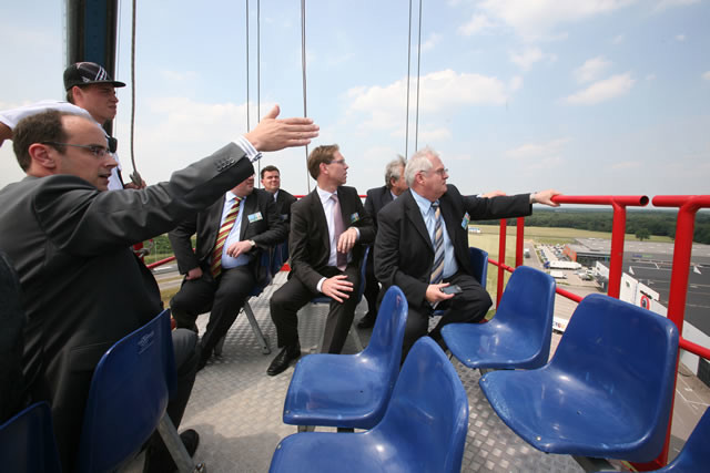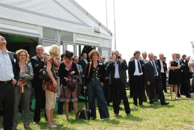 De notabelen bekijken de nieuwe mast van dichtbij en Fresh Park Venlo en haar omgeving.