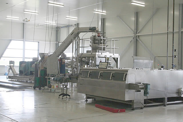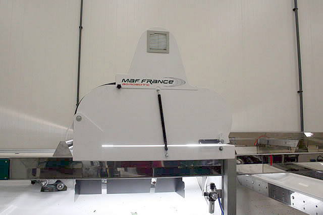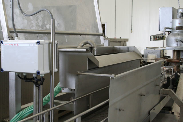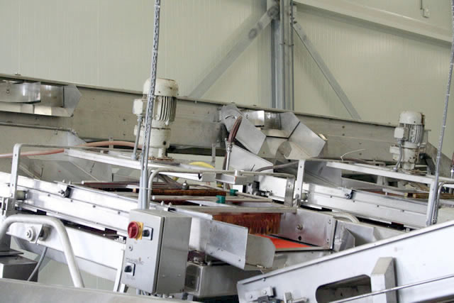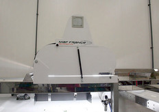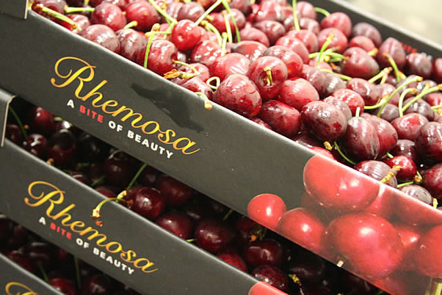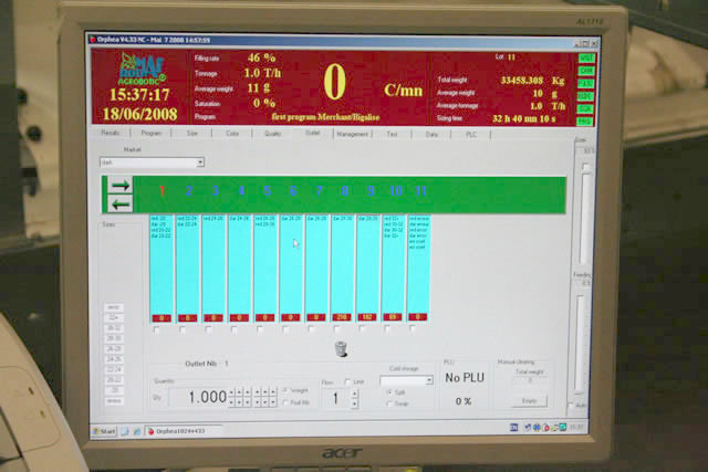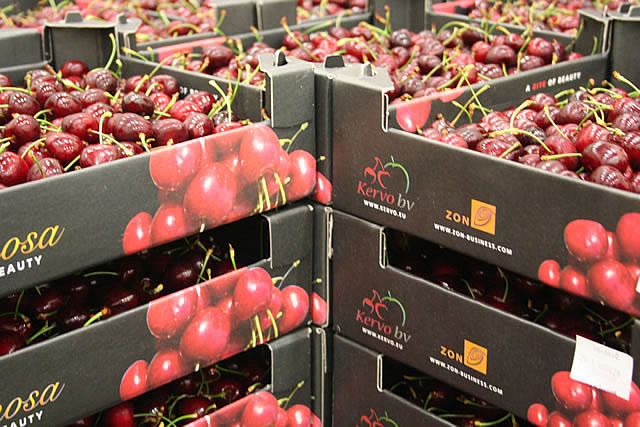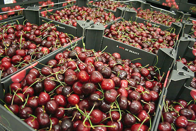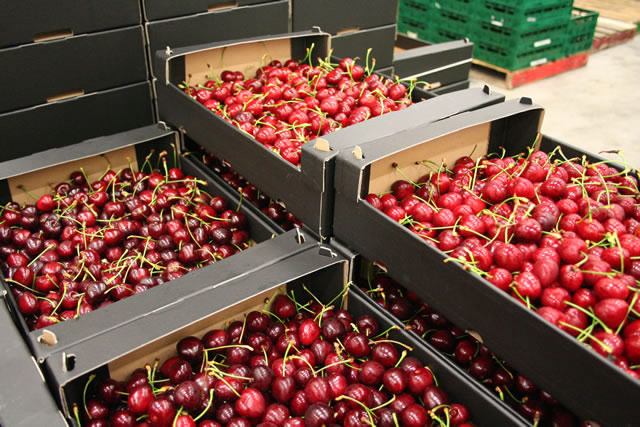 Er worden ook zoete kersen verpakt voor de daghandel. Deze kersen worden door deze machine automatisch gesorteerd op maat en kleur.