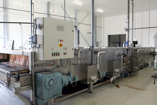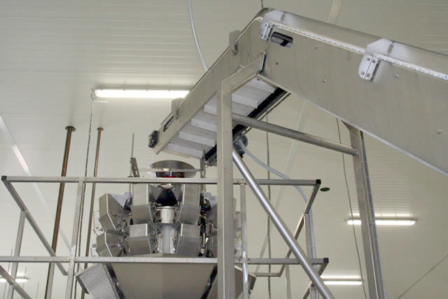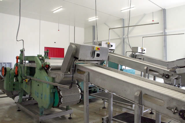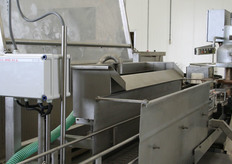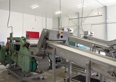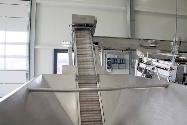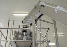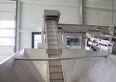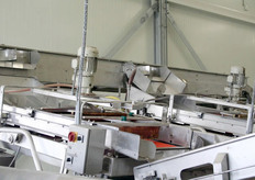 Middels deze transportband worden ze verdeeld over drie sorteerlijnen.