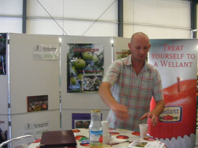 Hans Daalman van AB Zeeland deelt perenflappen uit.
