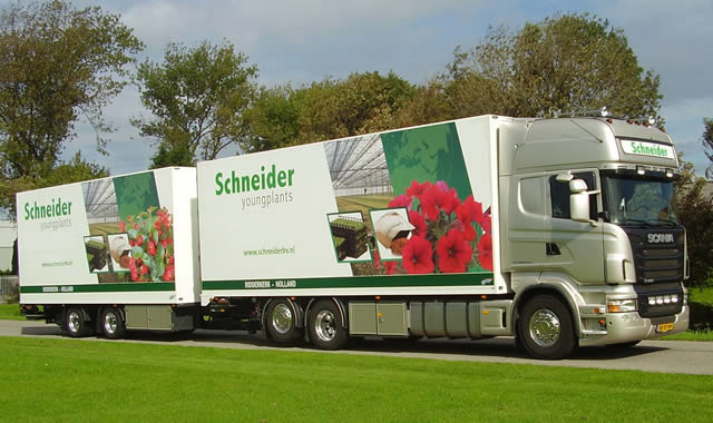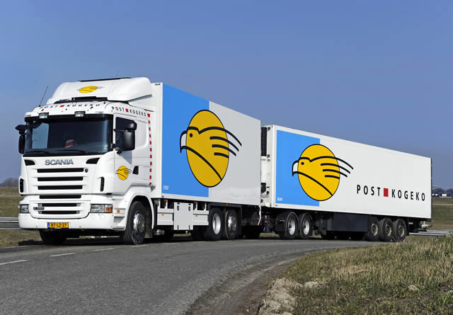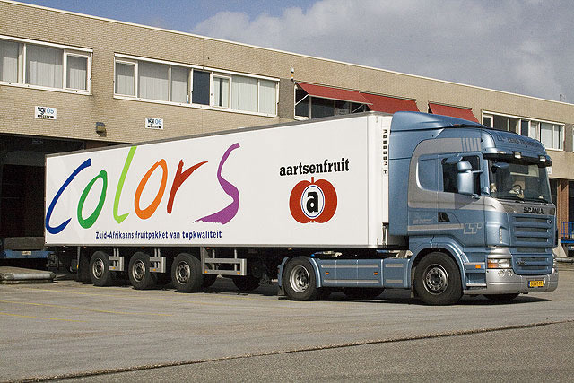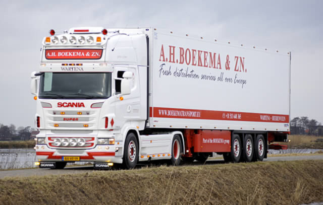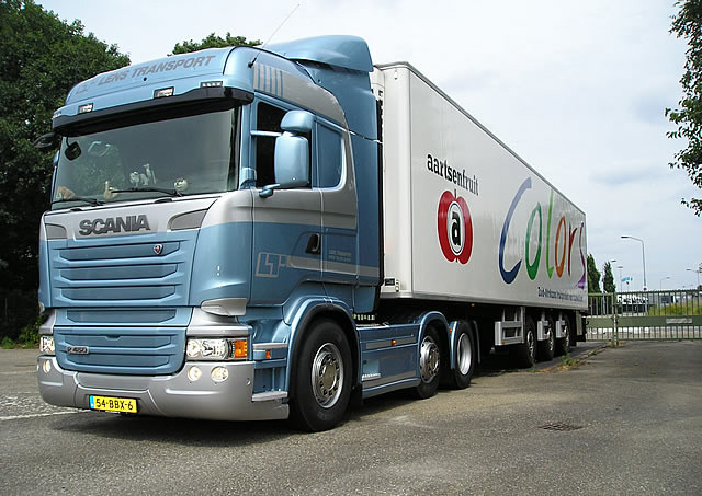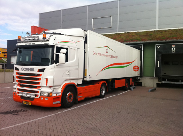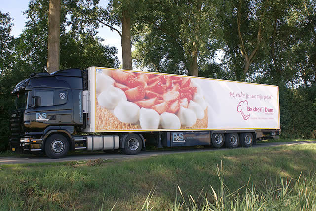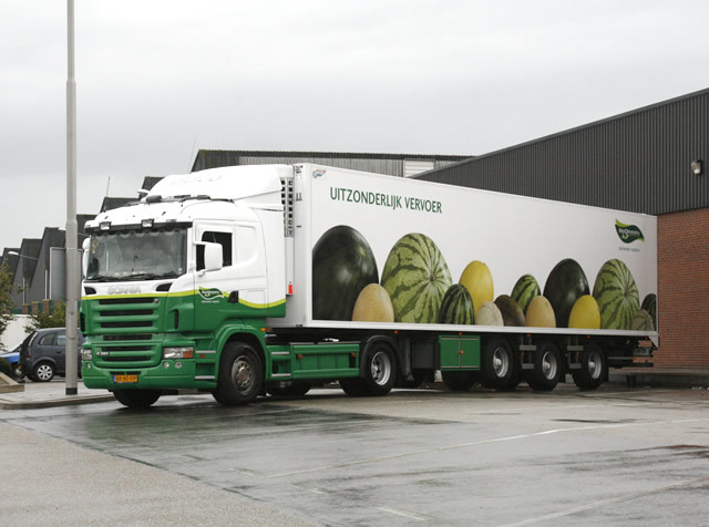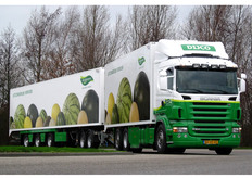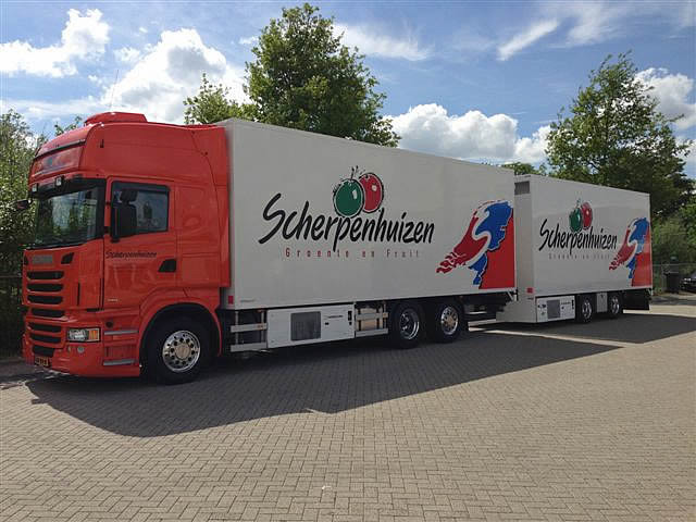 Scania P340, Lamboo Mega trailer, P & S Verstransport – Nature & More - Eosta