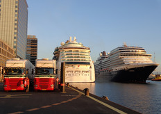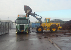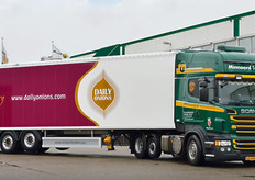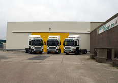 3 auto's die uien staan te lossen bij Ajuin in Moerkapelle. foto:Pieter Verboon