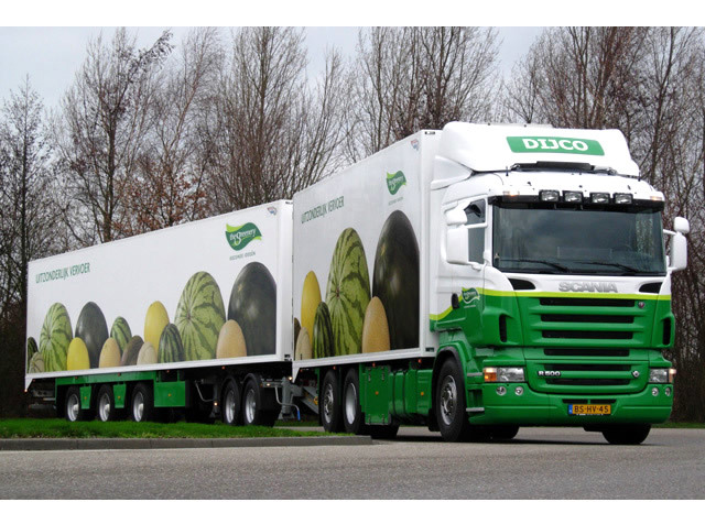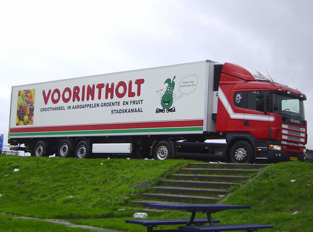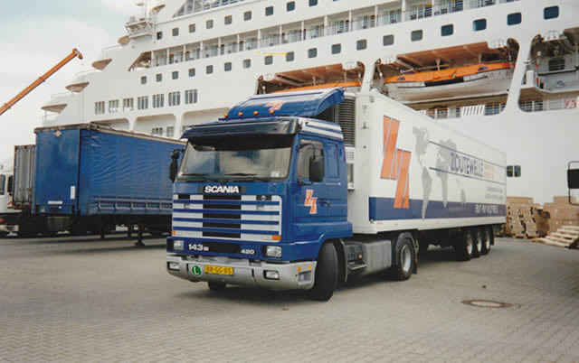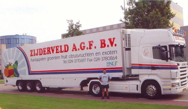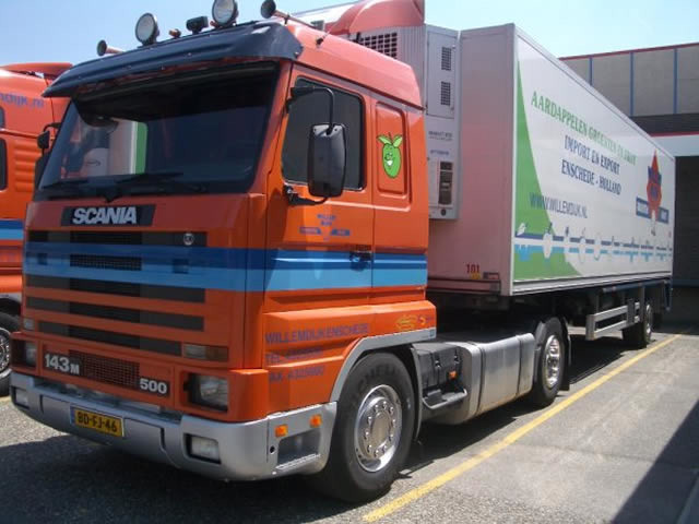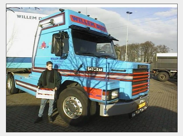 Scania 113 bouwjaar 1995, ESVE oplegger met een Hondebrink opbouw. Deze truck is nog steeds in het bezit van Willem Dijk AGF bv, en dient als reservertruck. De kilometerstand is 1.400.000 km , met dezelfde motor.