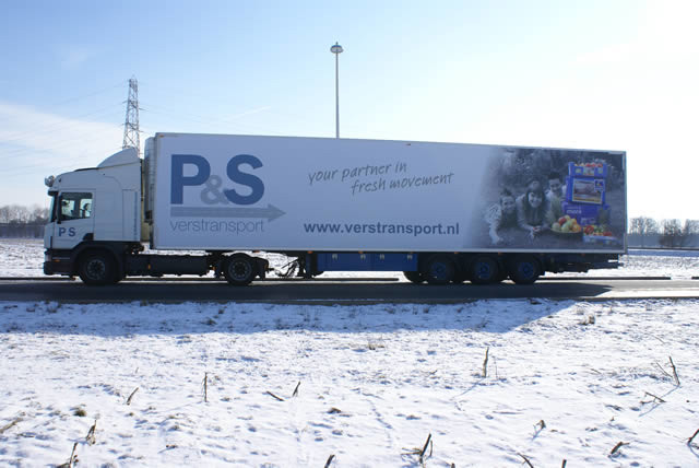 P & S Verstransport Scania P340 met Lamboo koel-, vriestrailer.