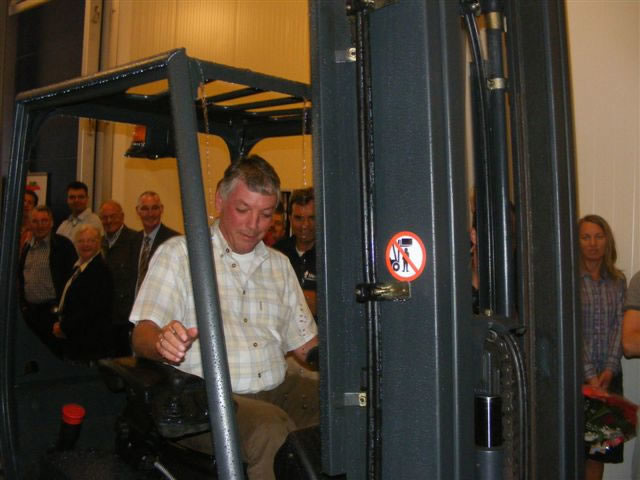 De officieële opening door Bert Wilschut met een heftruck en een voorraadkist appels.
